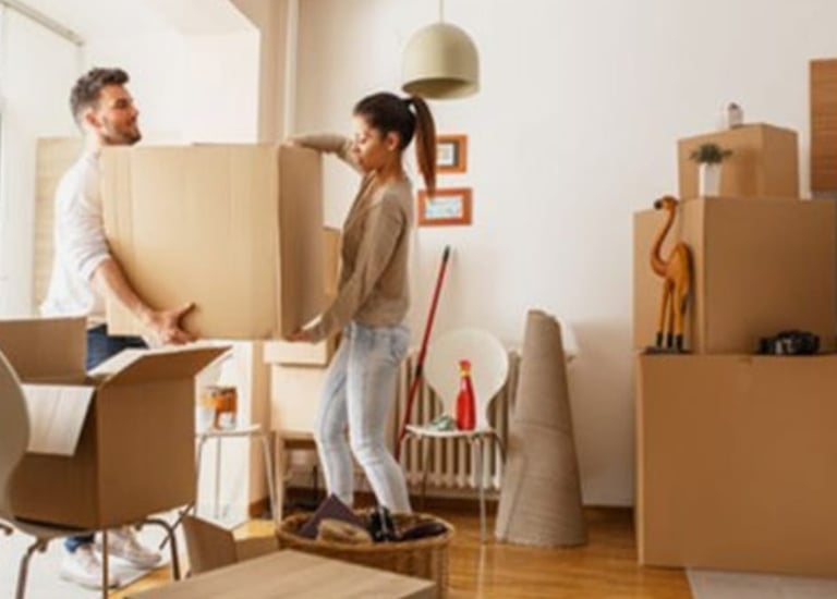 Expert house shifting services including packing, loading, unloading, curtain fixing, and bubble wrap packing.
